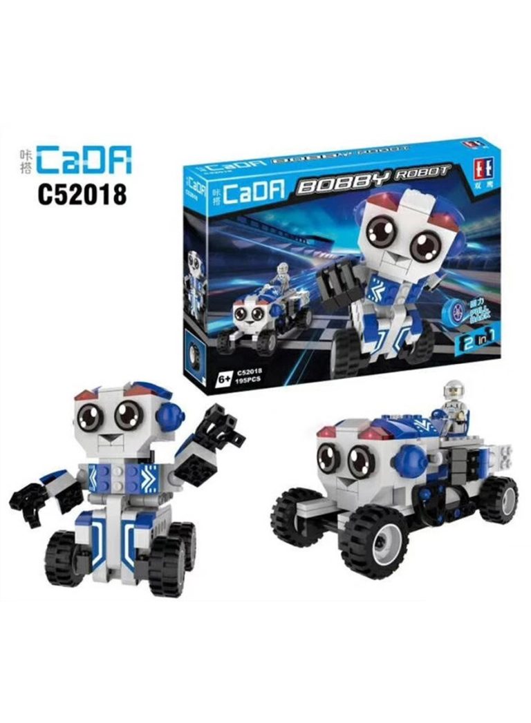 CaDA Double Eagle 2 in 1 Car Toy Building Blocks Blue & White Bobby Robot C52018W 195pcs for +6 Years old
