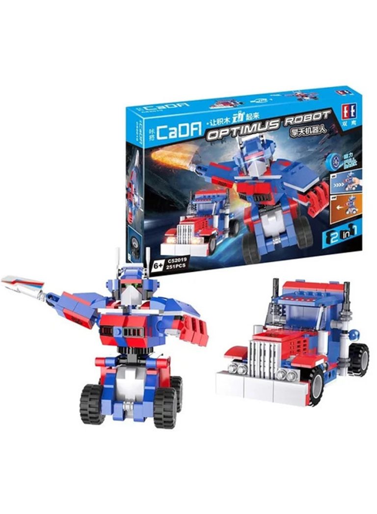 CaDA Double Eagle 2 in 1 Car Toy Building Blocks Blue & Red Optimus Robot C52019W 251pcs for +6 Years old